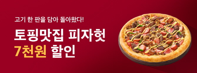 피자헛은 15일부터 2만 5,900원 이상 주문 고객에 7천 원 할인쿠폰을 제공해 소비자 혜택을 대폭 높일 예정이다. 이벤트 기간 배달특급 회원들은 1일 1회 할인쿠폰을 다운받아 주문이 가능하다.