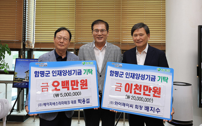 이어 함평천지프러그 영농조합법인(대표 이경주)이 1천만원, ㈜에이치에스리미테크 박용섭 대표가 5백만원을 인재양성기금으로 기탁했다.