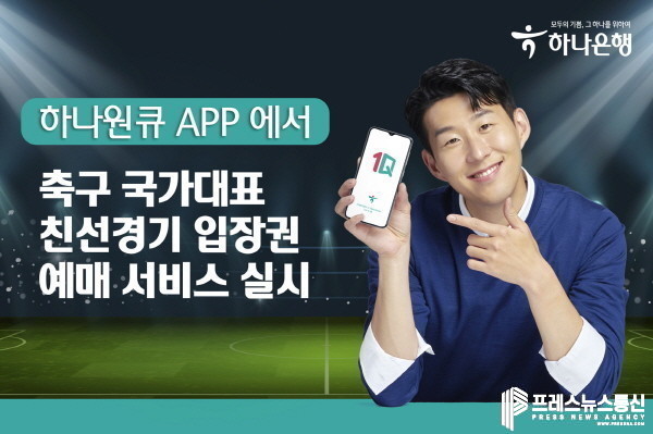 [프레스뉴스] 김대일 기자= 하나은행(은행장 박성호)은 은행 대표 모바일 앱인 「하나원큐」를 통해 ‘2022 FIFA 카타르 월드컵’을 앞두고 열리는 축구 국가대표팀 친선경기 입장권을 예매할 수 있는 서비스를 오픈한다고 밝혔다.