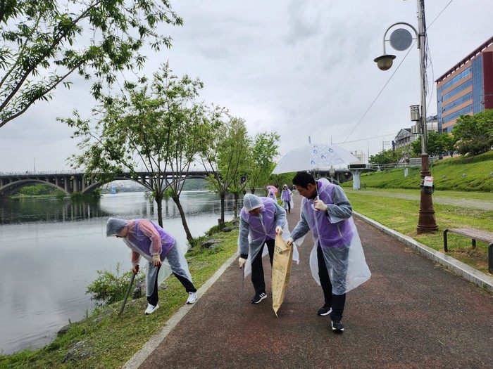 | ▲중앙동 통장협의회, 깨끗한 남강변 가꾸기 환경정화 사진=진주시 |