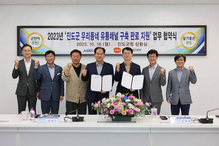 이날 협약식에는 진도군과 한국우편사업진흥원이 2023년 진도군 우리동네 유통채널 구축 사업의 활성화를 위해 송관호 한국우편사업진흥원장이 참석했다.