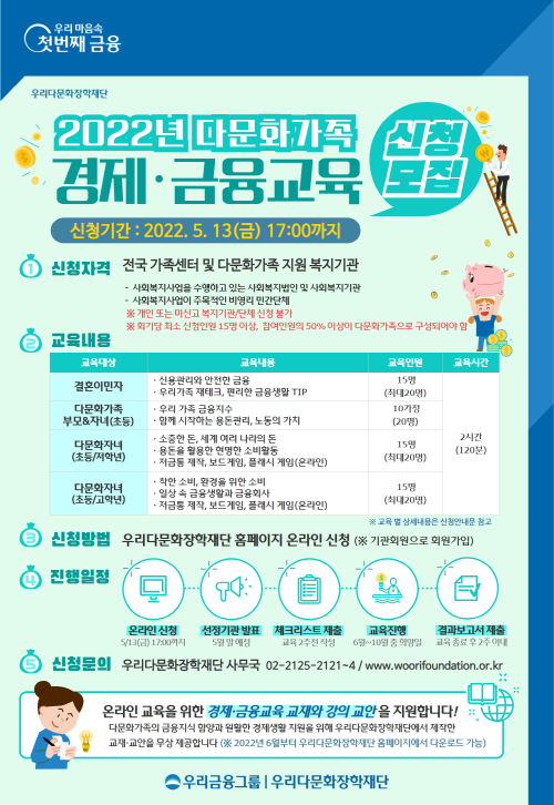 | ▲ 2022년 다문화가족 경제.금융교육 모집 포스터(사진=우리다문화장학재단) |
