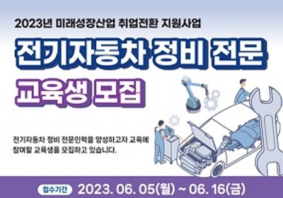 [프레스뉴스] 김대일 기자= 경기도가 ‘전기자동차 전문 정비인력 양성과정(북부)’에 참여하고자 하는 19세 이상 미취업 경기도민을 6월 16일 오후 5시까지 모집한다.