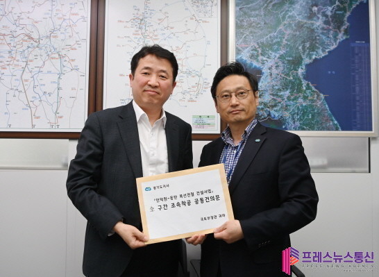 ▲ 지난 20일 오후석 행정2부지사가 『인덕원~동탄 복선전철 건설공사』 全 구간 조속착공 관련 중앙부처를 방문하여 공동건의문을 전달하고 국토교통부 철도국장과 면담을 가졌다.(사진=경기도북부청) |