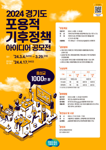 박대근 경기도 환경보건안전과장은 “이번 공모전을 통해 도민이 기후 변화로부터 보호받고 기회를 가질 수 있는 따뜻하고 실용적인 정책들이 발굴되기를 기대한다”며 “국민들의 많은 관심과 참여를 당부드린다”고 말했다.