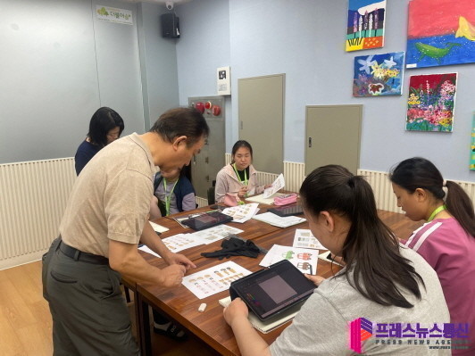 ▲더불어숲 직업재활센터와 한양대 디자인학과 간 산학 연계 수업 중 디지털 드로잉 교육이 진행되고 있다.(사진=안산시) |