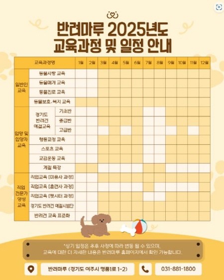 ▲2025년 반려마루(여주) 교육 일정표(사진=경기도북부청) |