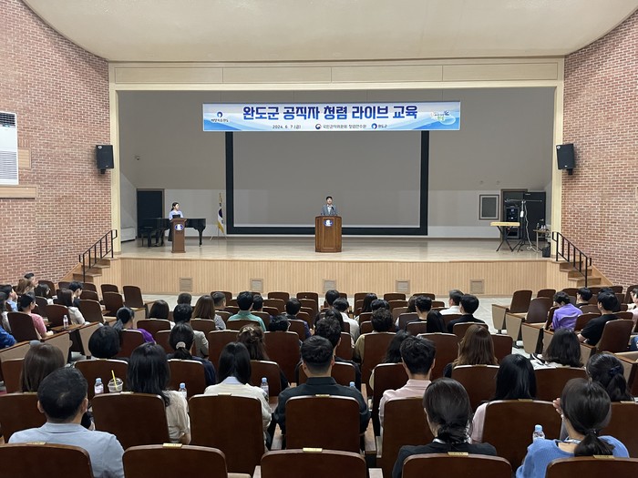 [전남=프레스뉴스] 박정호 기자 = 전남 완도군은 공직 기강 확립 및 청렴도 향상을 위해 지난 7일 생활문화센터에서 공직자를 대상으로 ‘청렴 라이브 교육’을 실시했다.