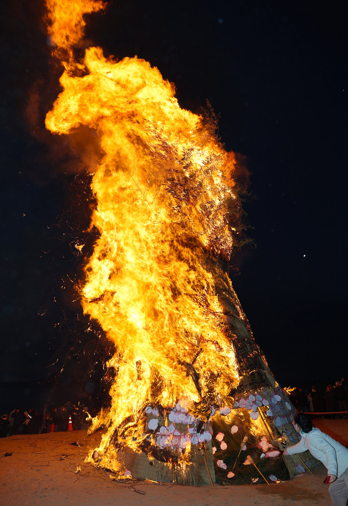 | ▲달집 태우기 행사 중 하늘을 향해 포효하며 도약하는 형상/보성군 제공 |