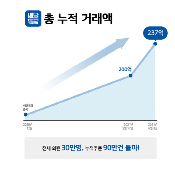 지난 2020년 12월 1일 배달특급 사업을 시작한지 약 반년 만에 지난해 회사의 총 거래액을 돌파, 꾸준히 상승세를 타고 있는 것이다.