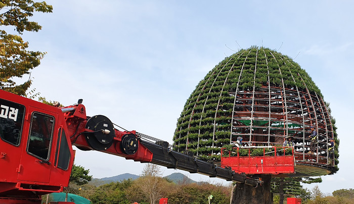 대형 꽃탑 조성에는 현애국화 화분 4천 여개가 소요됐으며 관광정책실 직원 등 50여명이 참여해 구슬땀을 흘렸다.