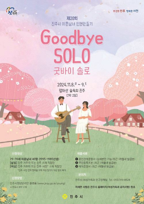 | ▲진주시는 11월 8일부터 9일까지 월아산 숲속의 진주에서 ‘제20회 진주시 미혼남녀 인연 만들기 행사 굿바이 SOLO’행사를 개최한다 (사진=진주시) |