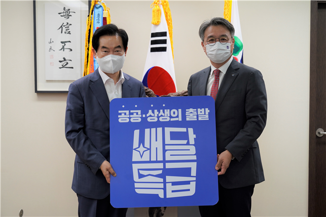경기도주식회사는 지난 2일 의정부시청에서 이석훈 경기도주식회사 대표이사와 안병용 의정부시장이 면담을 갖고 배달특급 활성화 방안에 대해 논의했다고 3일 밝혔다.