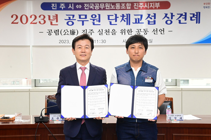 | ▲진주시, 공무원 노조와 공렴(公廉) 진주 실천 공동선언(사진=진주시 제공) |