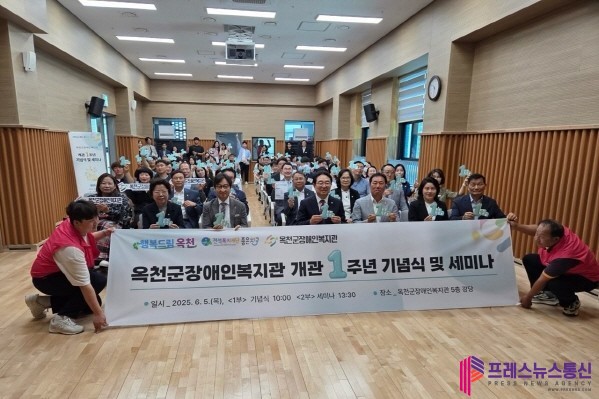 [프레스뉴스] 류현주 기자= 옥천군장애인복지관(관장 황명구)이 5일 복지관 5층 강당에서 ‘사람애 웃고, 이웃애 살며, 함께 성장한 1년’을 주제로 개관 1주년 기념식을 개최했다.
