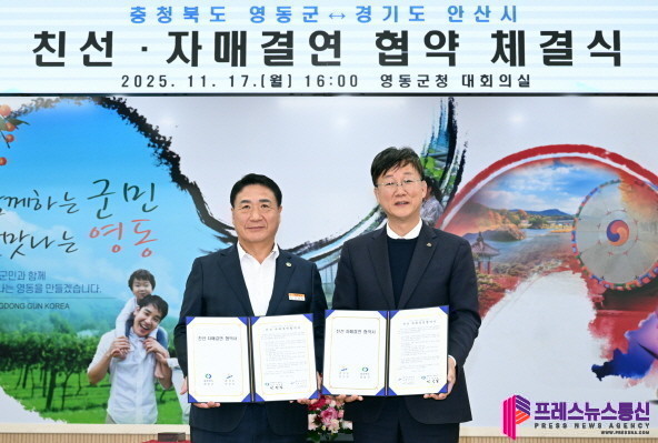 [프레스뉴스] 장현준 기자= 안산시(시장 이민근)는 지난 17일 영동군청에서 충청북도 영동군(군수 정영철)과 친선 결연 협약식을 체결하고 상호 협력을 약속했다고 18일 밝혔다.