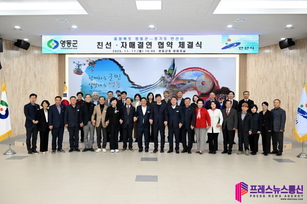 이민근 안산시장은 “해양문화관광도시 안산시와 내륙의 문화도시 영동군이 손을 맞잡은 오늘의 결연은 전통과 현대, 산업과 문화가 함께 성장하는 상생의 시작”이라며 “앞으로도 활발한 교류를 통해 양 지방자치단체가 서로의 장점을 나누고 시민과 군민 모두에게 실질적인 행복을 전할 수 있기를 기대한다”고 말했다.
