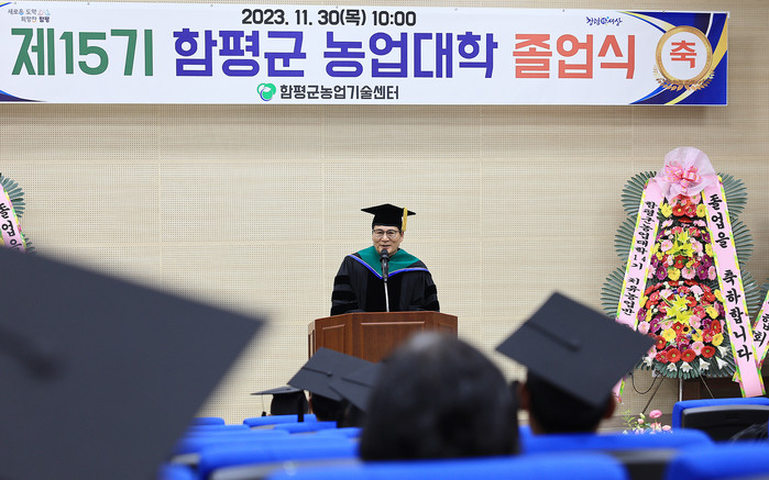 이상익 함평군수는 “농업환경과 기술이 급변하는 현재 농업인은 생산에서 유통까지 아우르는 유통 클러스터의 중심에 서야 한다”며 “졸업생들이 이번 대학에서 배운 내용을 실제 현장에 잘 적용해 함평농업이 고소득 기술농업으로 거듭날 수 있도록 잘 이끌어 달라”고 말했다.
