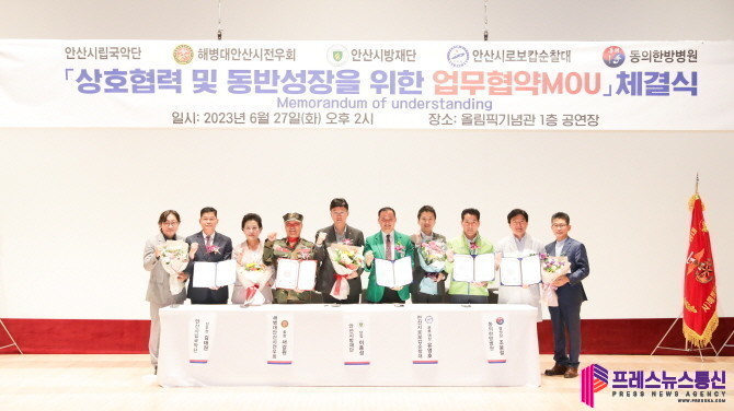 이날 행사는 안산시립국악단과 해병대안산시전우회, 안산시자율방재단, 안산시로보캅순찰대, 동의한방병원 등 5개 단체의 상호 협력을 위해 협약을 맺는 자리로 마련됐으며, 의원들 외에도 각 단체 구성원들과 이민근 안산시장 및 시 관계자 등 150여명이 참석했다.
