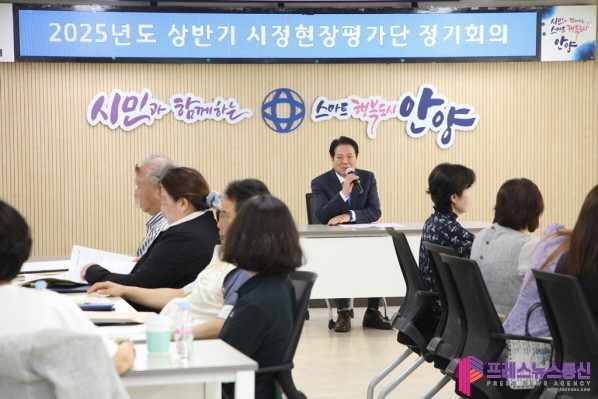▲최대호 안양시장이 지난 6월 12일 시청 4층 회의실에서 열린 2025년도 상반기 시정현장평가단 정기회의에서 인사말을 하고 있다.(사진=안양시) |