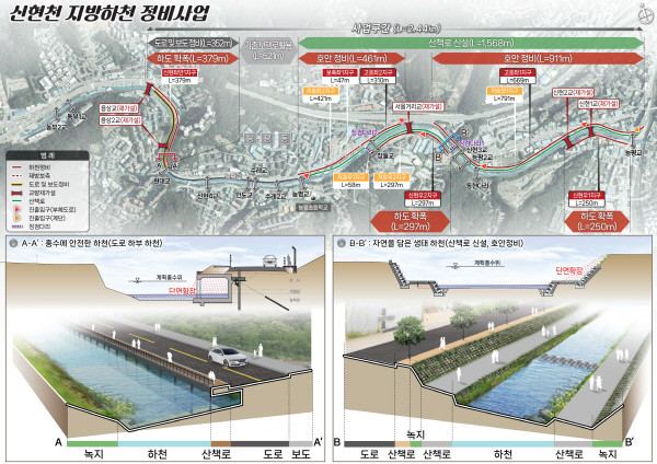 - 신현천 2.44㎞ 구간 내 제방 정비 통해 주택, 상가 등 16,120㎡ 홍수범람 예방