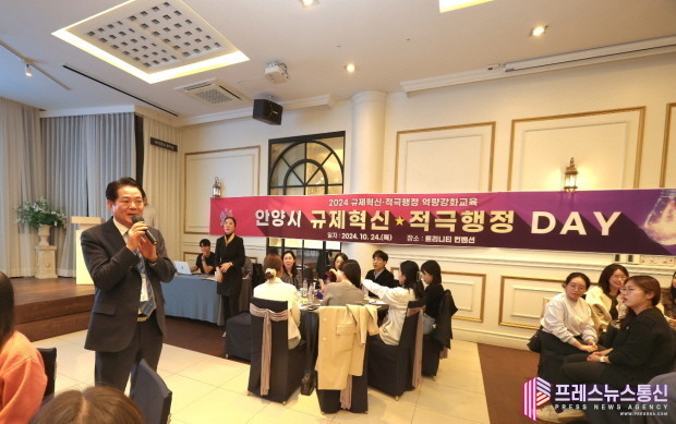 24일 오후 2시30분부터 6시까지 동안구 비산동 트리니티컨벤션에서 안양시 공무원 90여명이 참석한 가운데 ‘2024년 규제혁신・적극행정 역량강화 교육’이 진행됐다.