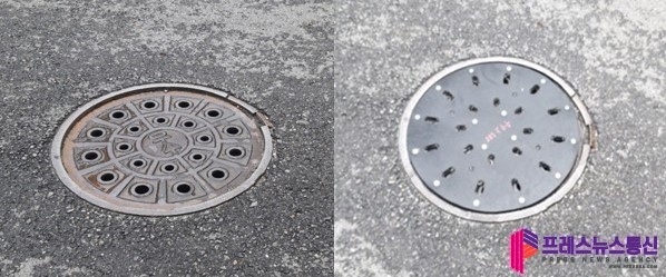 | ▲함몰된 맨홀(왼쪽)과 충격 방지구가 적용된 맨홀(오른쪽)사진=안양시 |