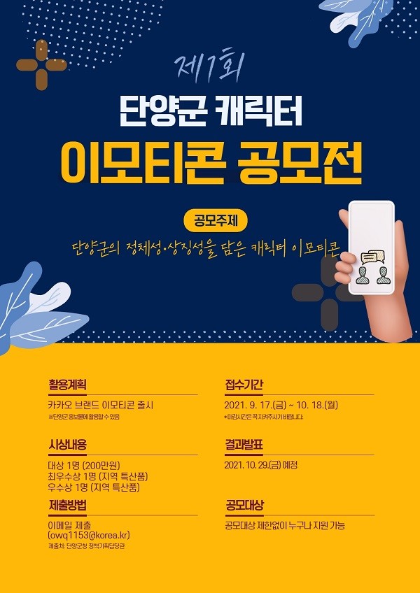 군 관계자는 “카카오톡 채널 ‘단양군청’은 군민 소통 창구로 자리매김하며, 많은 사랑을 받고 있다”며 “카톡 채널 활성화를 위해 이번 공모전을 추진하게 됐다”고 설명했다.