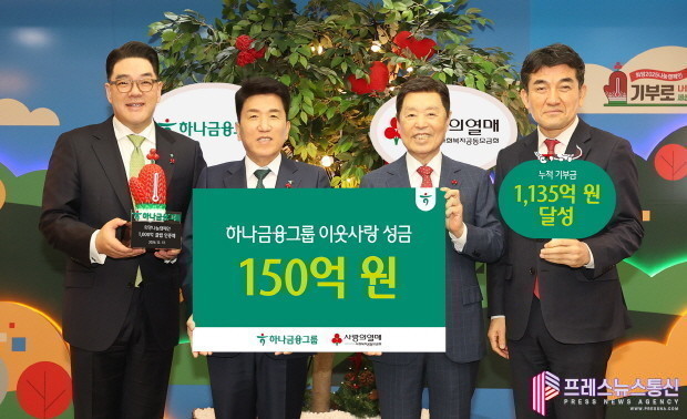 [프레스뉴스] 류현주 기자= 하나금융그룹(회장 함영주)은 서울 중구 소재 사랑의열매 회관 6층에서 소외된 사회 구성원을 지원하고 지속가능한 미래 나눔을 실천하기 위한「희망2025 나눔캠페인」에 동참하며, 150억원의 성금을 사랑의열매(사회복지공동모금회)에 전달했다고 밝혔다.