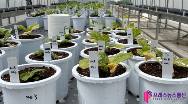 | ▲ 포트 검정중인 연구용 배추(사진=경기도) |