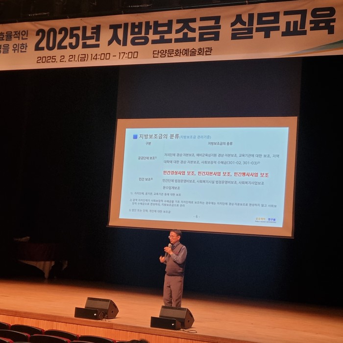 24일 군에 따르면 교육에서는 ㈜공공계약연구원의 조양제 원장이 강사로 나서 지방보조금 개요부터 ‘보탬e 시스템’을 활용한 집행 및 정산 방법까지 실무 중심으로 진행됐다.