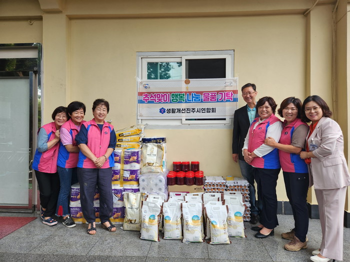 | ▲생활개선진주시연합회 추석맞이 행복나눔 물품 전달 사진=진주시 제공 |