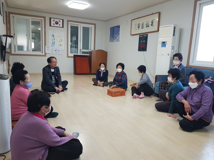 | ▲담양군 수북면 김종화 면장 마을회관 및 경로당 방문 주민 애로사항을 청취하고 있다.(사진제공=담양군) |