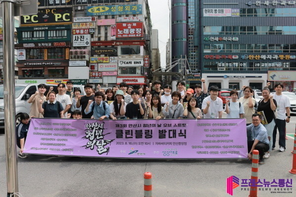 [프레스뉴스] 장현준 기자= 안산시(시장 이민근)는 오는 9월 16일 중앙동에서 개최되는 ‘제3회 안산시 청년의 날’ 행사의 홍보·화합, 안전을 위한 발대식 ‘클린블링(CleanBling) 캠페인’을 열었다고 17일 밝혔다.