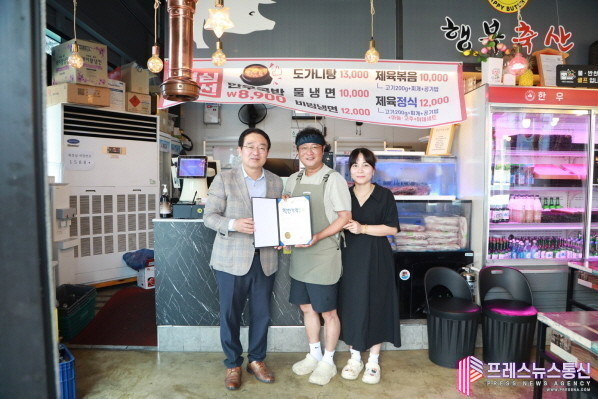 [프레스뉴스] 류현주 기자= 황규철 옥천군수는 지난 16일과 17일, 이틀에 걸쳐 신규로 지정된 착한가격업소를 직접 방문해 지정증과 인증 표찰을 전달했다.