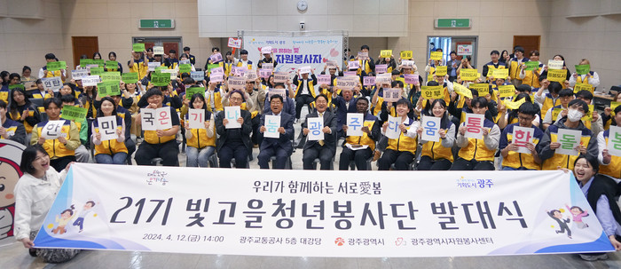 [광주=프레스뉴스] 강래성 기자= 광주광역시(시장 강기정)는 12일 광주교통공사 대회의실에서 200여명의 지역 대학생과 청년이 참여한 가운데 ‘제21기 빛고을청년봉사단 발대식’을 열었다.