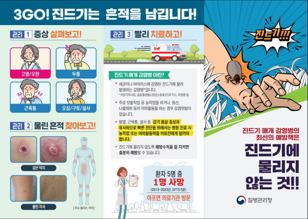 중증열성혈소판감소증후군(SFTS)은 SFTS 바이러스를 보유한 작은소피참진드기에게 물린 후 4~15일 잠복기를 거쳐 고열(38~40도), 오심, 구토, 설사 등 증상이 나타나는 감염병이다. 이 질병은 예방백신이 없고, 혈소판과 백혈구 감소로 인해 심하면 사망에 이를 수 있다.