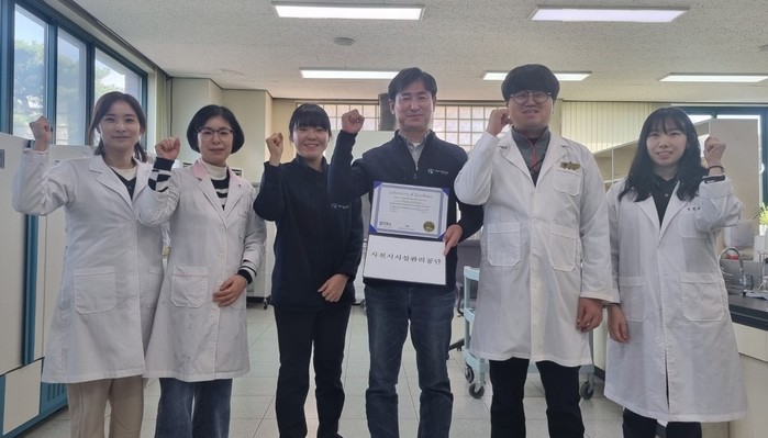 | ▲사천시시설관리공단(이사장 한재천)은 미국환경자원협회가 주관하는 ‘2024년도 국제공인 숙련도 평가’에서 최우수 분석기관(Laboratory of Excellence)으로 인증받았다고 10일 밝혔다. (사진=사천시) |