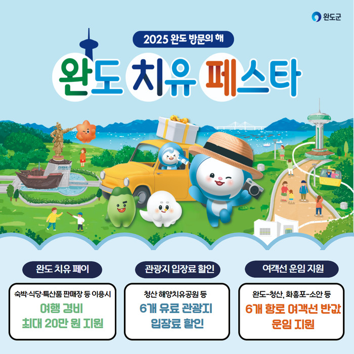 [전남=프레스뉴스]박정호 기자= 완도군은 ‘2025 완도 방문의 해’를 맞아 관광객에게 다양한 여행 혜택을 지원하는 ‘완도 치유 페스타’를 시작한다.