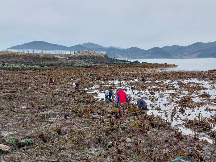 | ▲신수도 해안변 미역 채취 사진=사천시 |