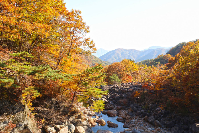 대원사계곡길은 4계절 저마다의 아름다움을 연출하고 있지만 형형색색의 단풍이 만개하면 가을의 아름다움을 느끼기에 최적의 장소다.