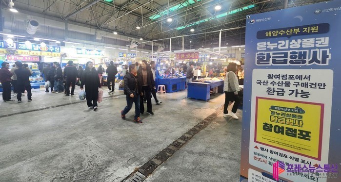 이번 행사는 수산물 소비촉진과 도매시장 활성화를 위해 해양수산부 지원으로 지난 추석 명절에 이어 두 번째로 개최됐다. 수산동 26개 점포가 참여한 이번 행사는 국내산 수산물 구매 시, 구매 금액의 최대 30%(1인 2만원 한도 내)를 온누리상품권으로 환급하는 혜택을 선보였다.
