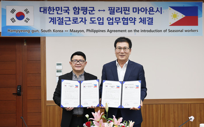 이번 협약에 따라 필리핀 카피스주 마아욘시는 우수한 계절근로자를 선발해 교육 등을 지원하고 마아욘시 시장이 직접 근로자를 관리해 이탈을 방지한다.