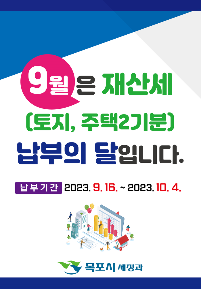 | ▲목포시가 주택 2기분 및 토지에 대한 재산세를 부과하고 납부를 안내했다.(사진제공=목포시) |