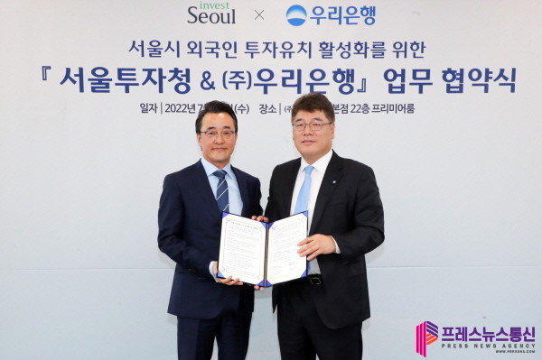 [프레스뉴스] 김대일 기자= 우리은행(은행장 이원덕)은 지난 20일 서울 중구 회현동 우리은행 본점에서 서울투자청과 ‘해외투자유치 활성화를 위한 업무협약’을 체결했다고 21일 밝혔다.