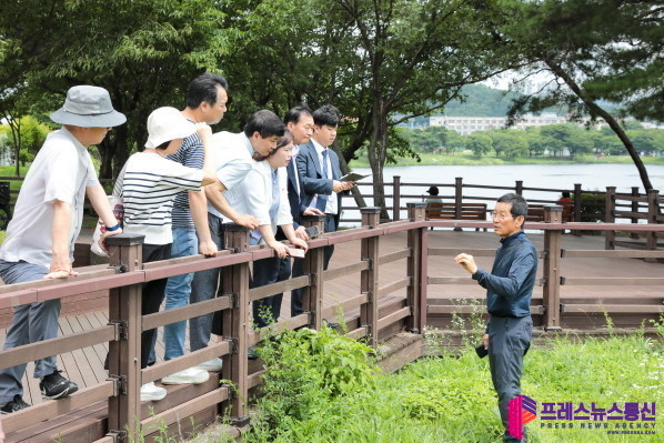 [프레스뉴스] 류현주 기자= 안산시의회 의원들이 지난 16일 시민사회계 인사들과 지역 수변 생태계의 보고로 자리 잡은 안산 화랑유원지 내 화랑호수에 대한 현장활동을 실시했다.