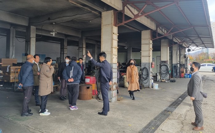 | ▲시민공론화 위원들이 지난 24일 시내버스 정비소를 현장점검 했다.(사진제공=목포시) |