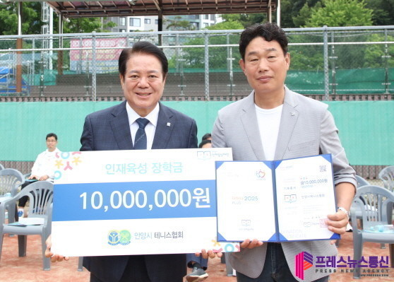 [프레스뉴스] 장현준 기자= 안양시 인재육성재단(이사장 최대호)은 지난 14일 안양시 테니스협회(회장 김기주)로부터 1천만 원의 인재육성 장학금을 기탁받았다고 17일 밝혔다.