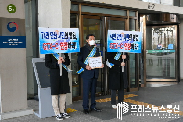 윤화섭 시장은 안산시를 대표해 지난 21일 세종 국토부 앞에서 GTX-C노선 안산 연장 운행을 촉구하는 1인 시위를 벌였다. 이어 74만 안사시민의 염원이 담긴 건의문을 국토부 장관에게 전달했다. 실시협약 체결이 미뤄진다는 소식에 안산 운행이 제외될 수 있다는 우려에 직접 행동에 나선 것이다.