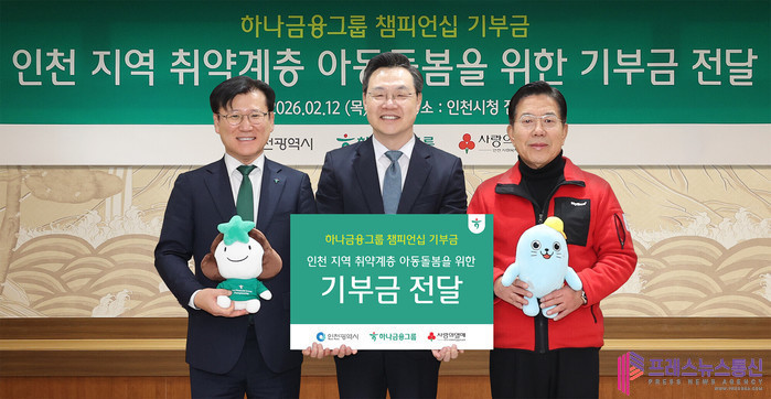 [프레스뉴스] 류현주 기자= 하나금융그룹(회장 함영주)은 지난 12일 지역사회와의 상생과 아동돌봄 사각지대 해소를 위해 인천 지역 아동돌봄 지원 기부금 7천만원을 전달했다고 밝혔다.